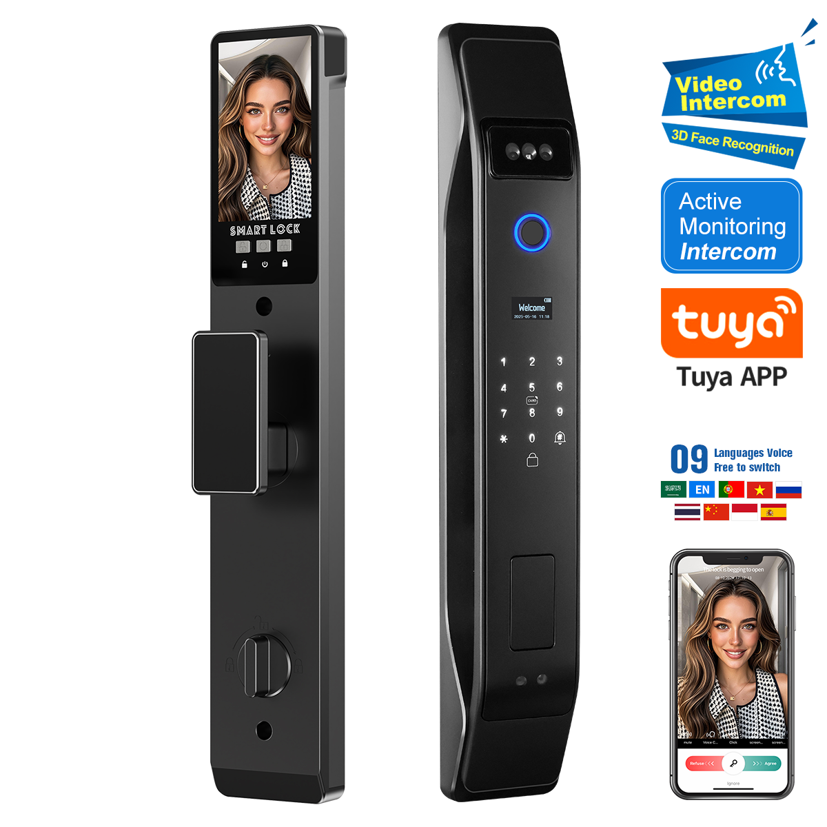 საკეტის გახსნის მეთოდი | სახის ამომცნობი, აპლიკაცია, თითის ანაბეჭდი, ბარათი, პასკოდი, გასაღები |