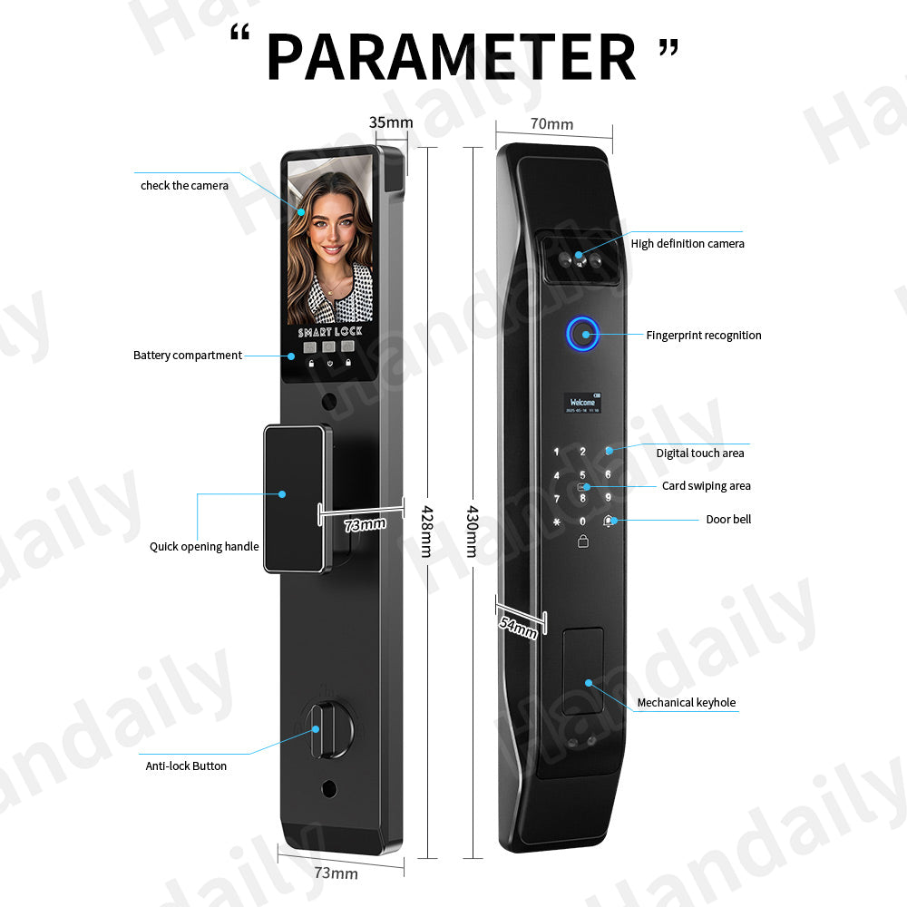 Handaily-ის ბრენდის ჭკვიანი საკეტი WI-FI-ის მხარდაჭერით SL13-K9