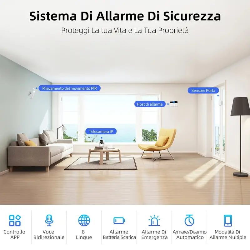 | კომპლექტაციაში | WIFI+GSM პანელი - 1; დისტანციურად სამართავი პულტი -2; RFID ბარათი - 2, კარის უსადენო სენსორი - 6; მოძრაობის უსადენო სენსორი - 3; USB კაბელი - 1; SOS ღილაკი - 1, სიგნალიზაცია (სადენით) - 1; |