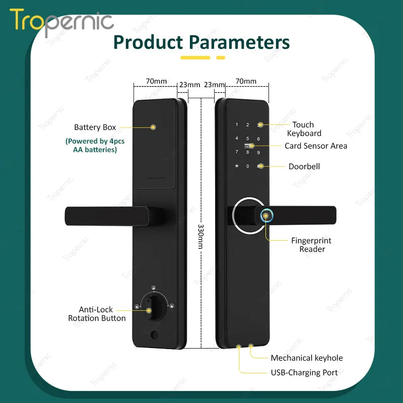 Tropernic-ის ბრენდის ჭკვიანი საკეტი WI-FI-ის მხარდაჭერით SL06-Z13P